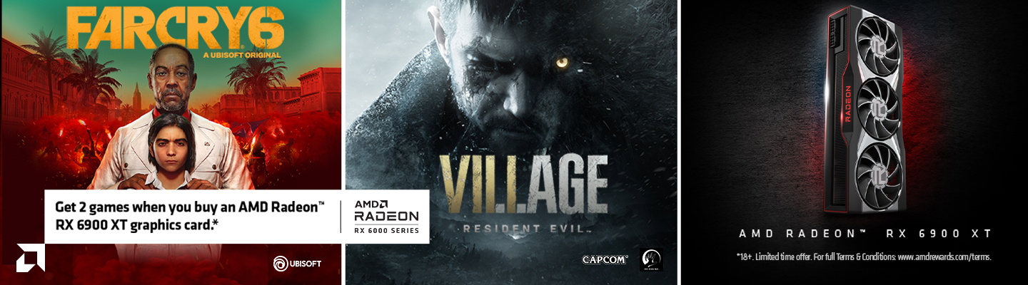 Get Far Cry® 6 and Resident Evil™ Village when you purchase an AMD Radeon™ RX 6900 XT graphics card.*